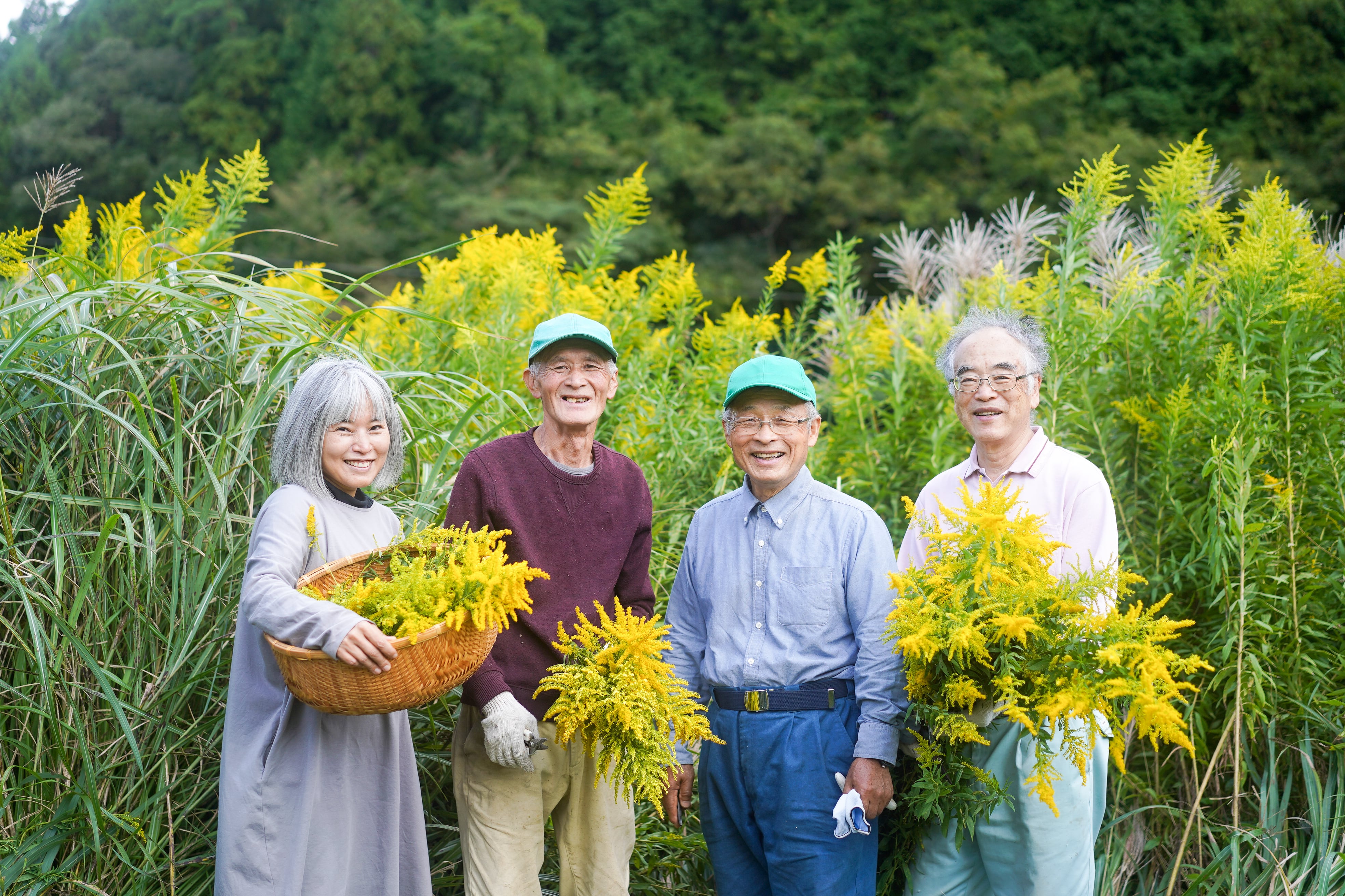 地域団体「大田市林友会」の皆さんなど、地域の方のご協力もいただきながら、刈り取りから蒸留までを行い、セイタカアワダチソウ精油を使ったアロマ商品シリーズが完成しました。